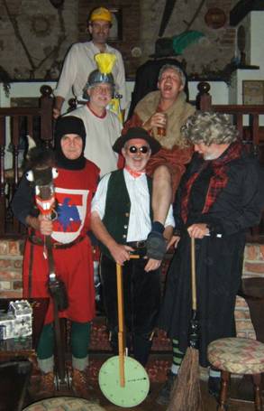 After an absence of 17 years the play was revived in 2005 in connection with the Knaresborough FEVA festival, the cast, seen below in the Mother Shipton Inn, (front row, l-r) was Baron Hugh de Morville: John Burrell, Blind Jack: Martin Ord, Mother Shipton: Doug Child, (middle row l-r) Fairfax: Dave Williams, St. Robert: Jeff Garner, (rear row l-r) Toby Shipton: Chas Marshall, Guy Fawkes: Julian Sharpe. Not forgetting Eric the horse as Eric the horse!!