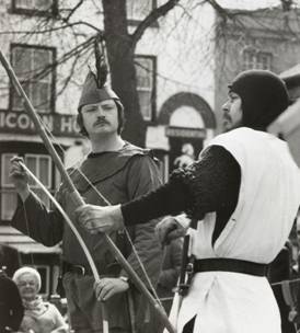 The play features a competition between Robin Hood: Vince Doemling and Guy of Guisburn: Stuart Rankin here demonstrating their archery skills:-