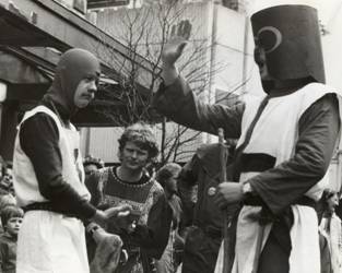 This was a 15th Century May Day play from Great Yarmouth which Stuart Rankin researched and was performed, in its original mediaeval language, on a May Day tour with Betty Luptons Ladle Lakers on Monday, 1st May, 1978. The script wasnt that lengthy, with the story narrated by two of the plays participants, swopping over when one was killed! The basis of the plot was that of mistaken identity and disguise and in the final scene the head of Robin Hood, brought to the Sheriff in a sack, turns out to be a turnip, Robin being the bearer of the sack in disguise, who then slays the Sheriff.