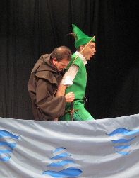 Robin, having crossed the River Skell on the Friars back, is then forced to return the favour by the Friar. Taken at Pateley Playhouse on 8th December, 2012