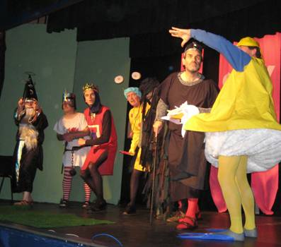 Much hilarity usually resulted from the entrance of Guillemar who was mounted on a duck! The whole structure was very Reeves and Mortimer (before their time!) and the weight of the false legs at the front were delicately balanced by a kettle full of stones hanging from a hook at the back. In the premier performance, with its own sense of perfect timing at a space in the dialogue, the hook decided to give way and the kettle fell to the stone floor with a beautiful loud plop, pitching the surprised Guillemar forward. No-one could have timed it better and it was some minutes before the play continued, with everyone including the cast, collapsed with laughter!!