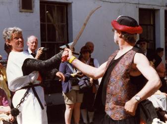 At Beverley Folk Festival on Sunday 20th June, 1999 St.George: Jeff Garner gets stuck in against Prince Valentine: Dave Williams.