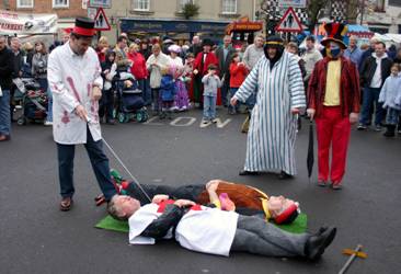 Taken at the Edwardian Market in Knaresborough on Sunday, 12th December, 2004, the picture shows Doctor: Chas Marshall administering the cure to St. George: Ted Dodsworth, Prince Valentine: Dave Williams, while the King of Egypt: John Burrell and Sambo: Martin Ord look on.